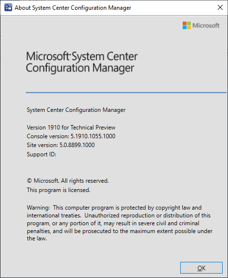 Congratulations, you are now in Configuration Manager technical preview 1910. Watch out for the production version soon.