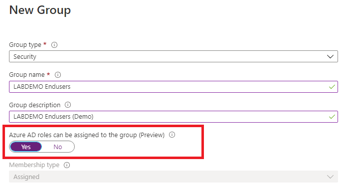 Just take note once this Azure AD group setting is created, you cannot change anything later on.
