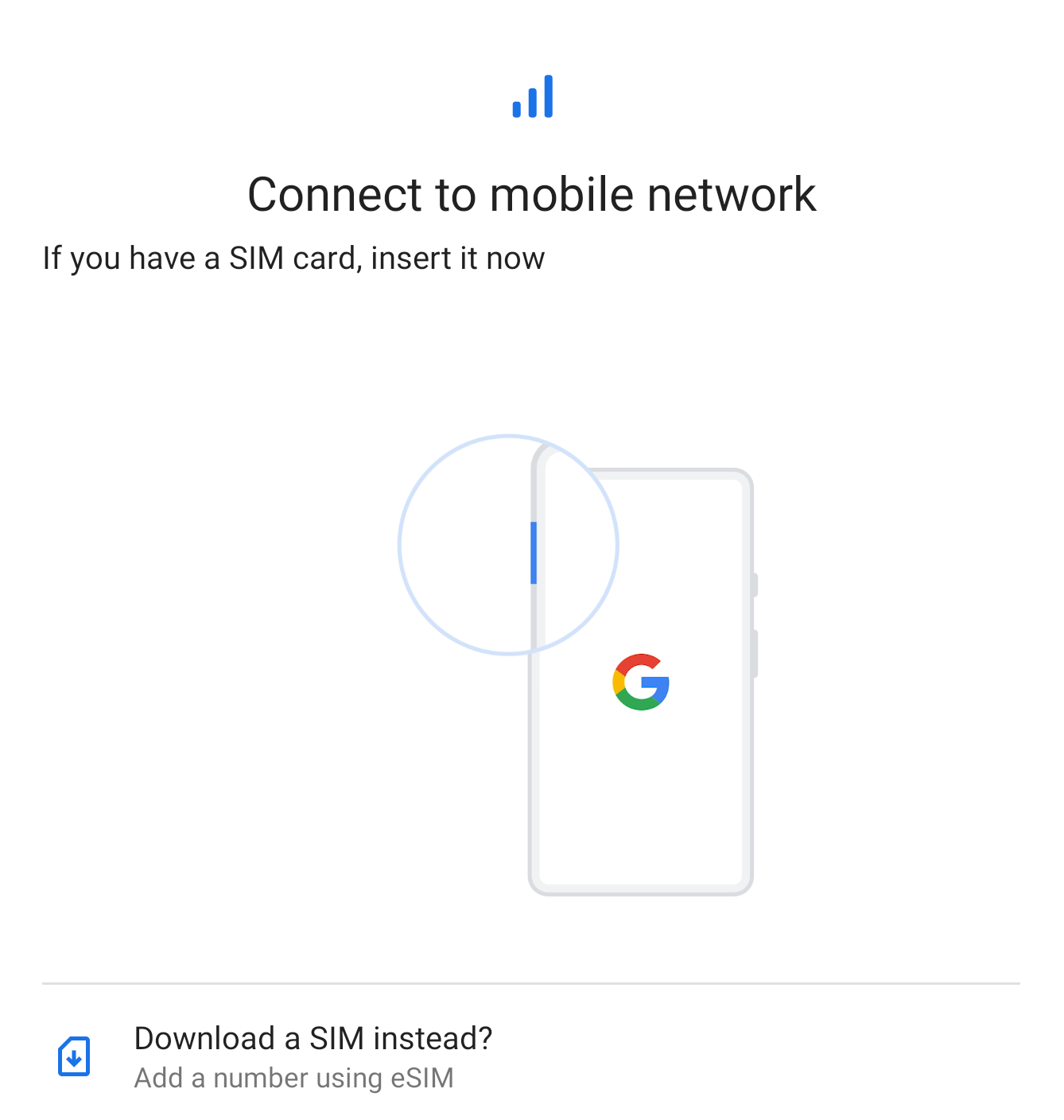 2. At the Connect to mobile network, tap at the Download a SIM instead?.