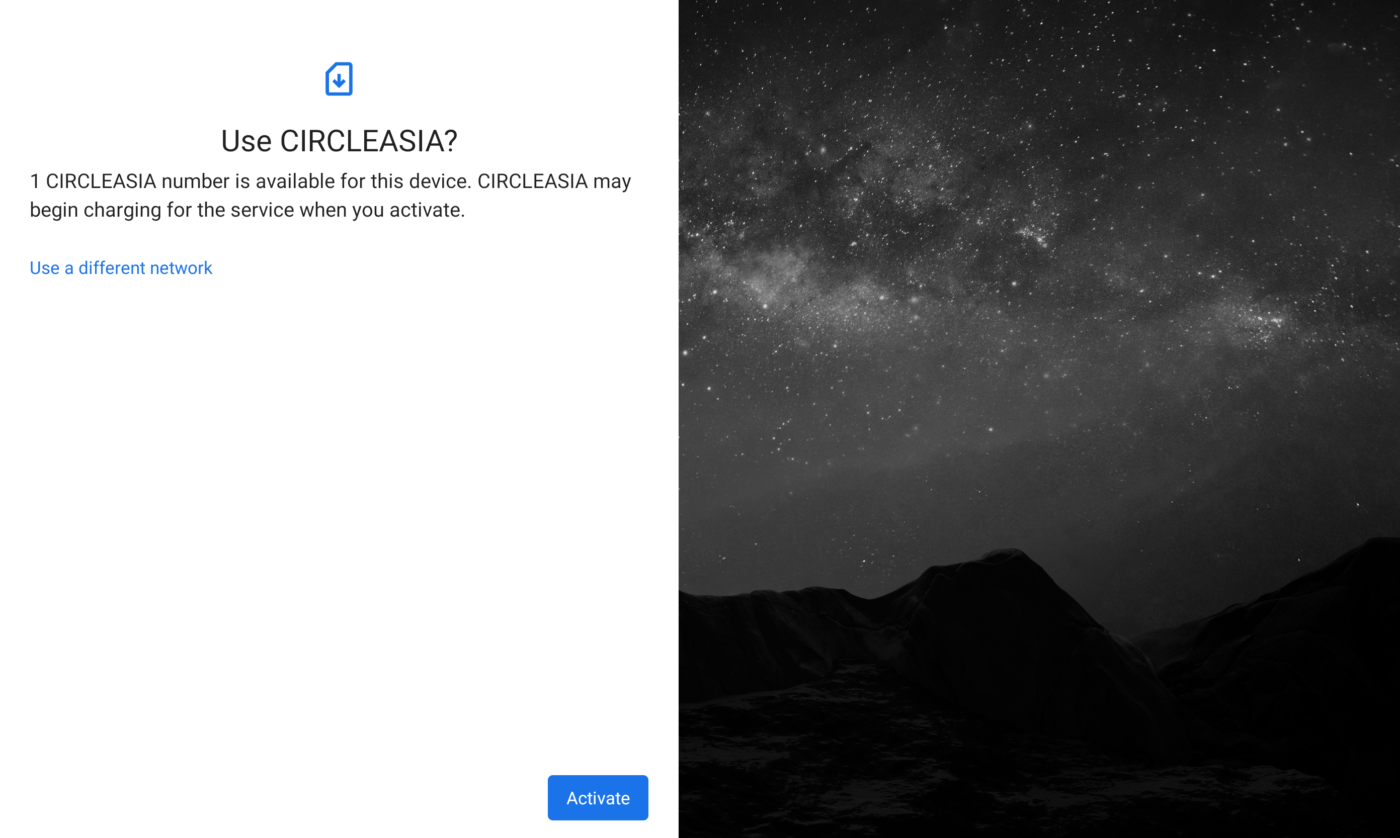 5. After I scanned the QR code, I was prompted with the screen below to confirm the use of my carrier, I then tapped on the Activate button to proceed.