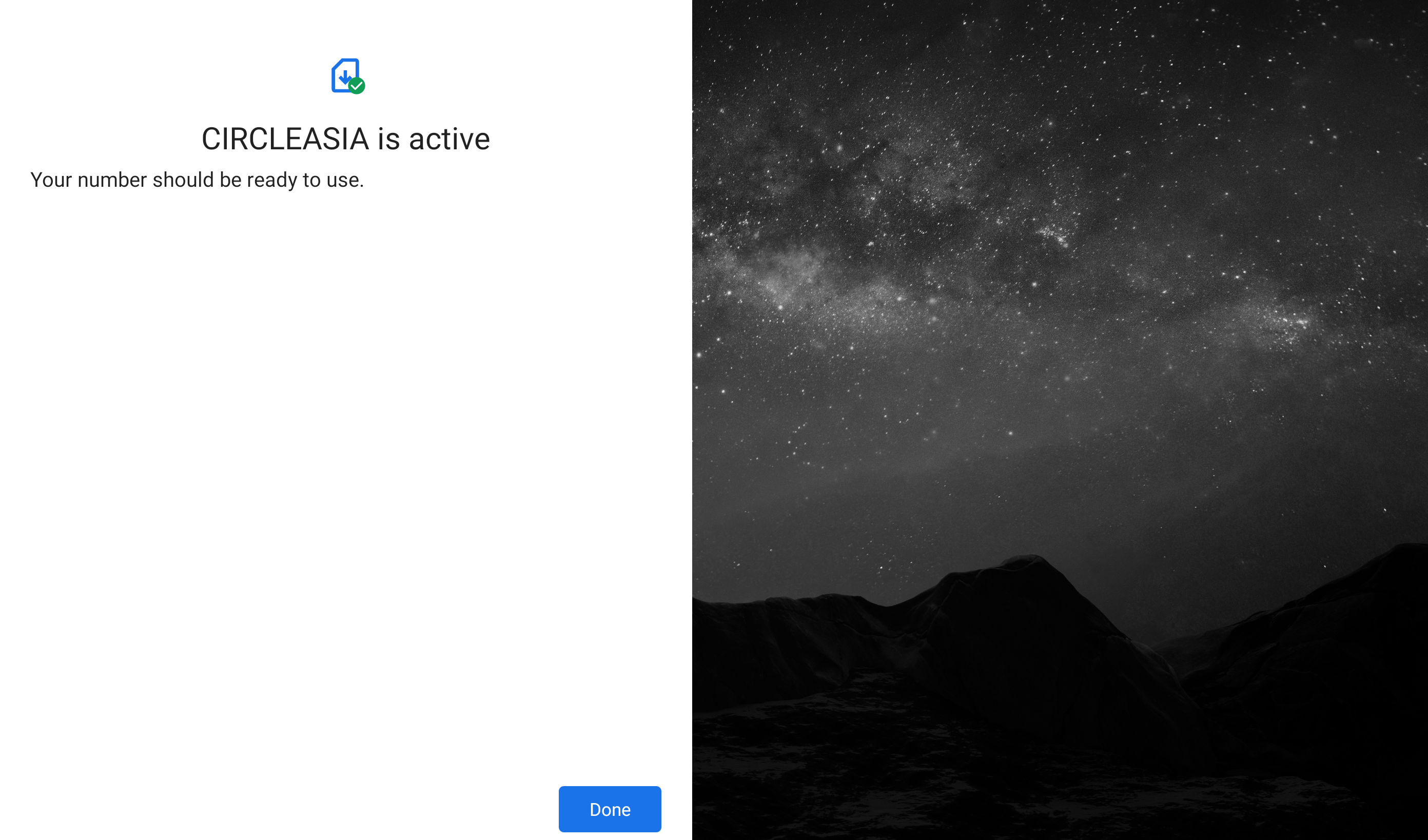 6. The next screen confirmed that my carrier is active and my number is ready to use. I tapped Done to close the screen and complete the eSIM setup.
